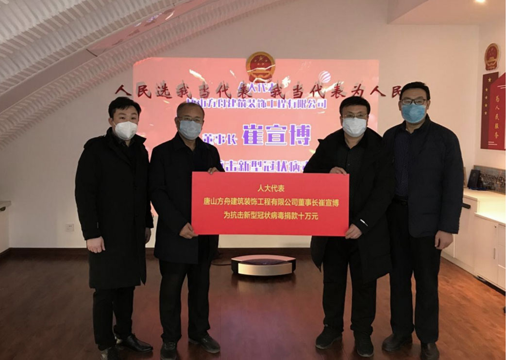 作為市、區(qū)兩級人大代表的博海方舟集團(tuán)董事局主席崔宣博春節(jié)期間率先啟動抗擊新冠肺炎疫情防護(hù)愛心捐款行動,代表方舟建設(shè)集團(tuán)有限公司捐款 10 萬元(其中:5 萬捐給武漢用于抗疫;5 萬捐給路北區(qū)用于防疫),用自己的實際行動為武漢和路北區(qū)抗疫防治工作貢獻(xiàn)著一名人大代表的一份力量,彰顯出一位民營企業(yè)家的家國情懷和責(zé)任擔(dān)當(dāng)。